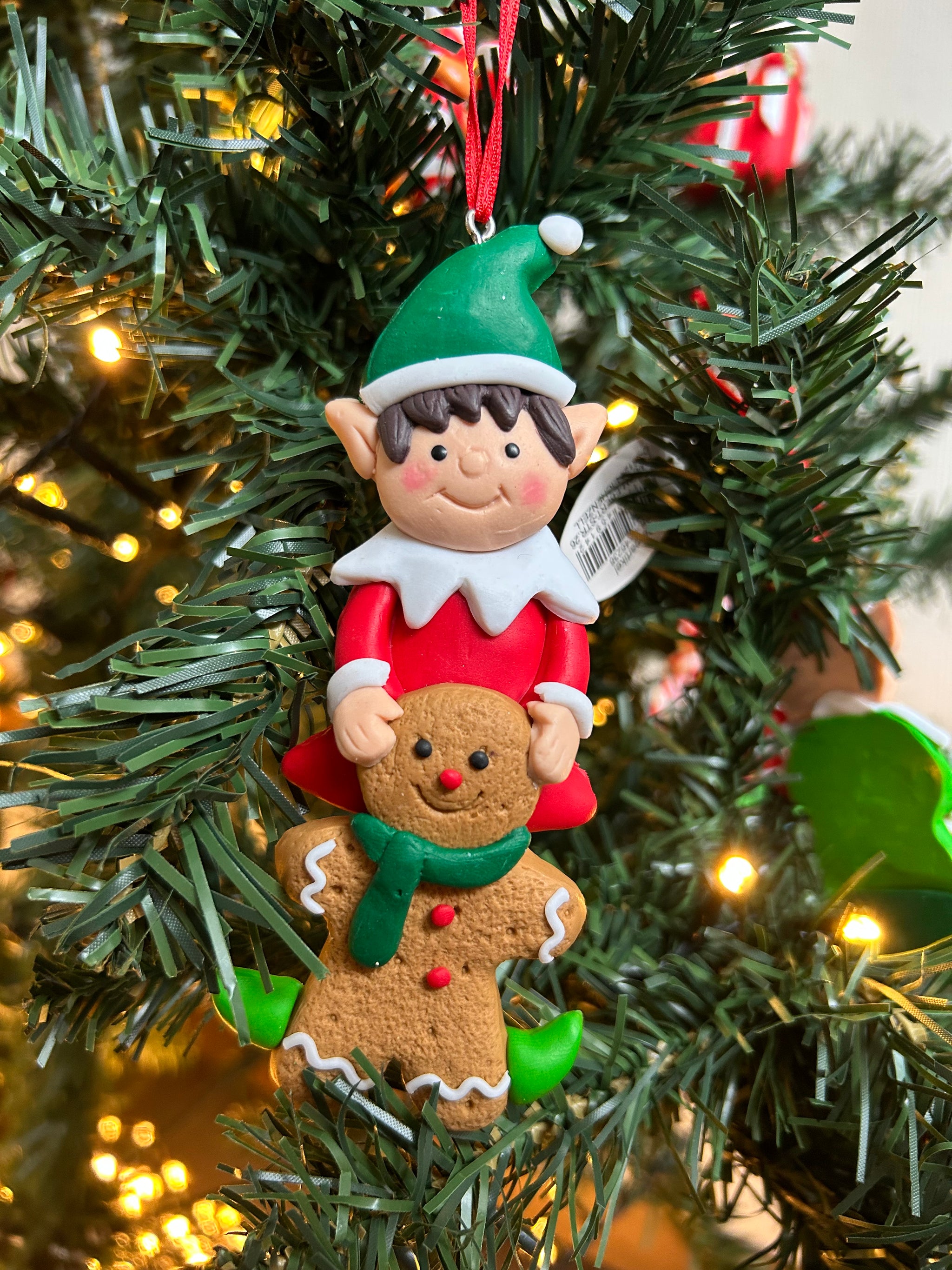 Elfjes horen toch helemaal bij  de kerst!? Maak jouw kerstboom compleet met dit elfje in rode kleding, groene laarzen met een groene kerstmuts op en een groot Gingerbread poppetje in zijn handen. Dit elfje hoort bij een set van twee. Zie ons aanbod voor het andere elfje met een zuurstok in zijn handen.