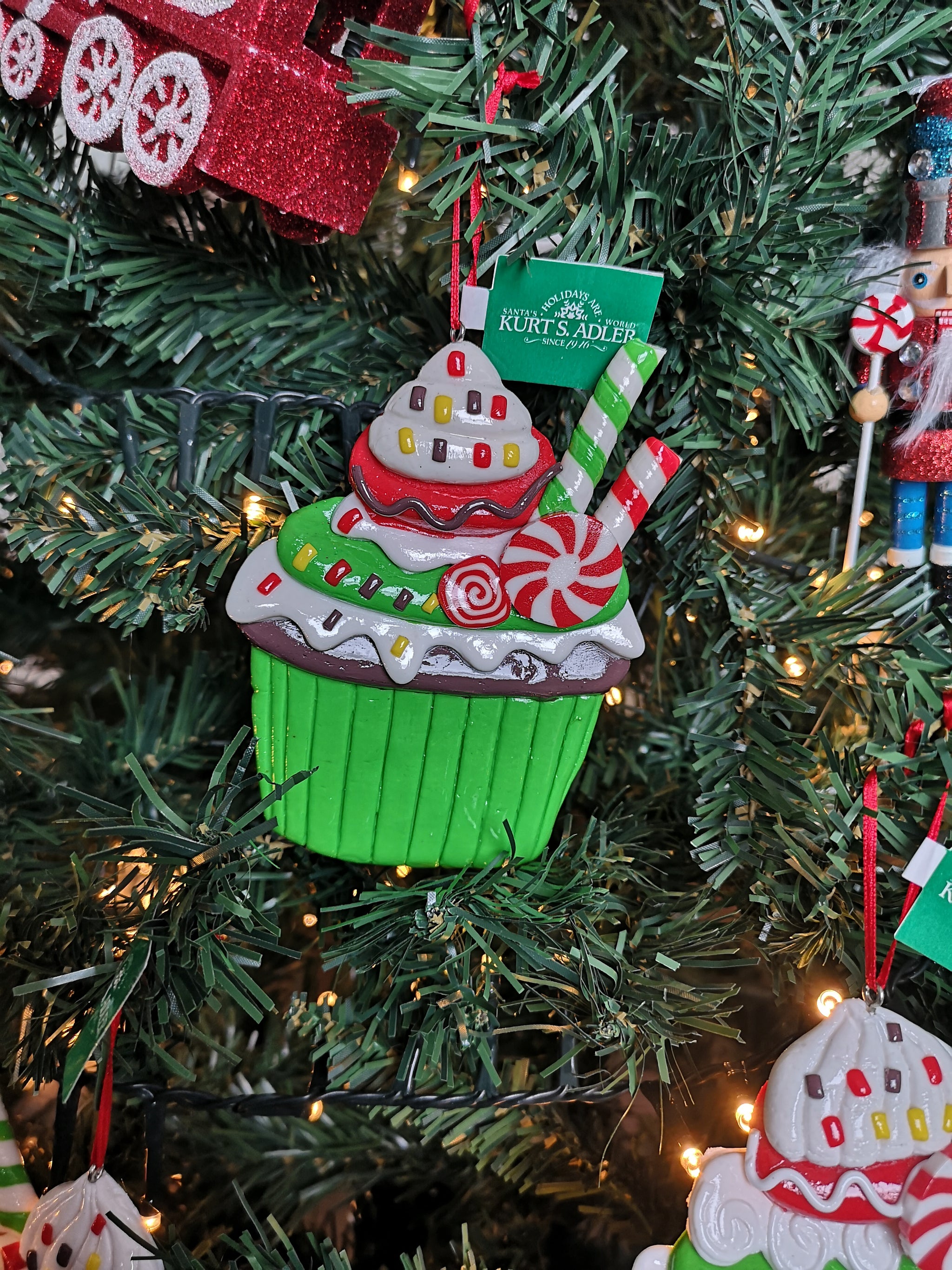 Deze cupcake kersthanger van Kurt S. Adler is een leuke aanvulling in je kerstboom. De cupcakes zijn er in drie verschillende kleuren: één in een lichtgroene cupcakevorm, één in een donkergroene cupcakevorm en één in een rode cupcakevorm. Elke cupcake is versierd met chocolade- en vanilleglazuur, pepermuntsnoepjes en hagelslag.