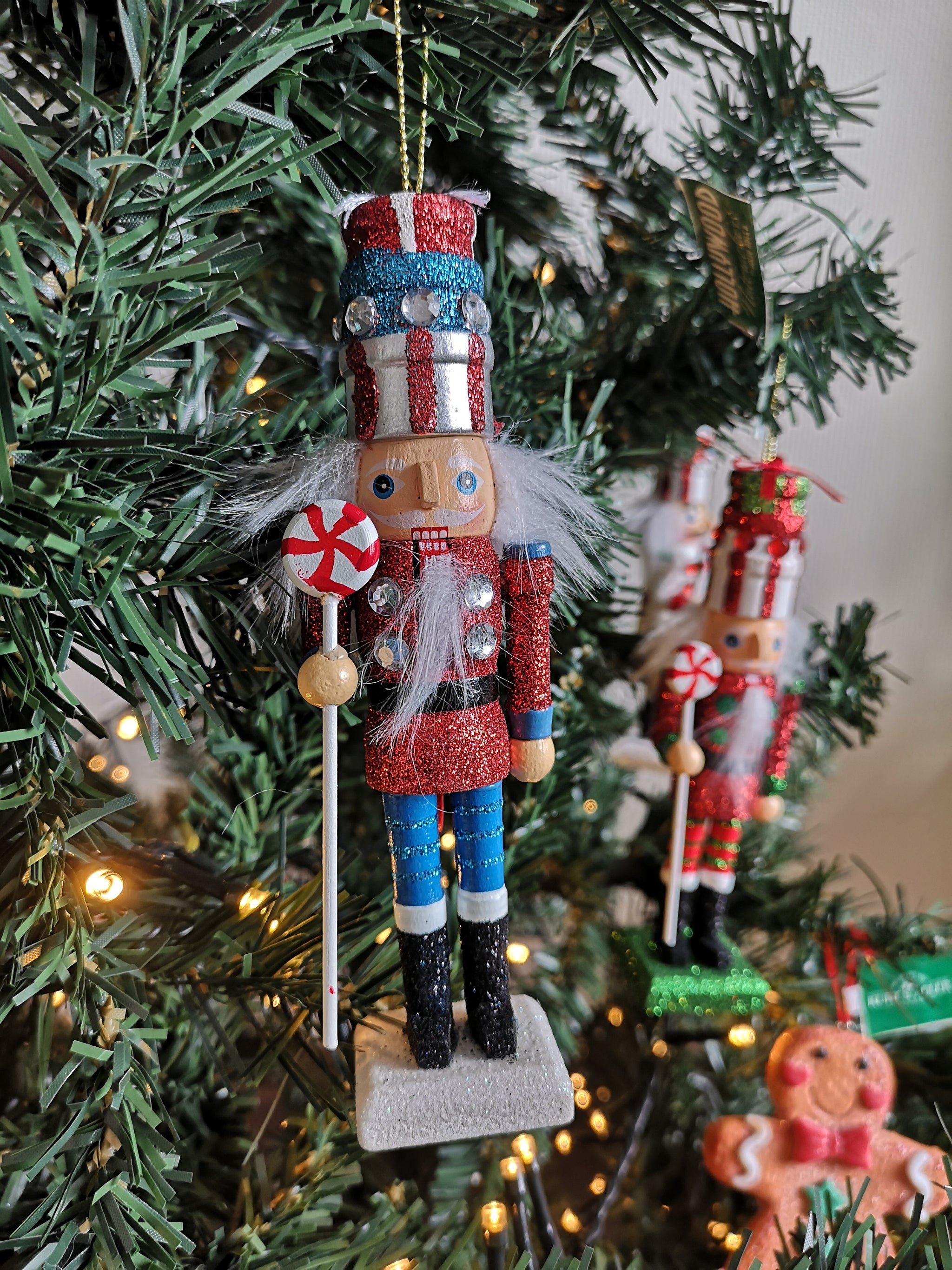 Dit is een houten notenkraker uit de ‘’Hollywood’’ collectie van Kurt S. Adler. Deze notenkraker heeft een stapel cadeaus op zijn hoofd en een pepermuntsnoep scepter in zijn handen. Verder is de notenkraker voorzien van glitters en edelsteentjes. Deze houten notenkraker is ook beschikbaar in 2 andere kleuren.
