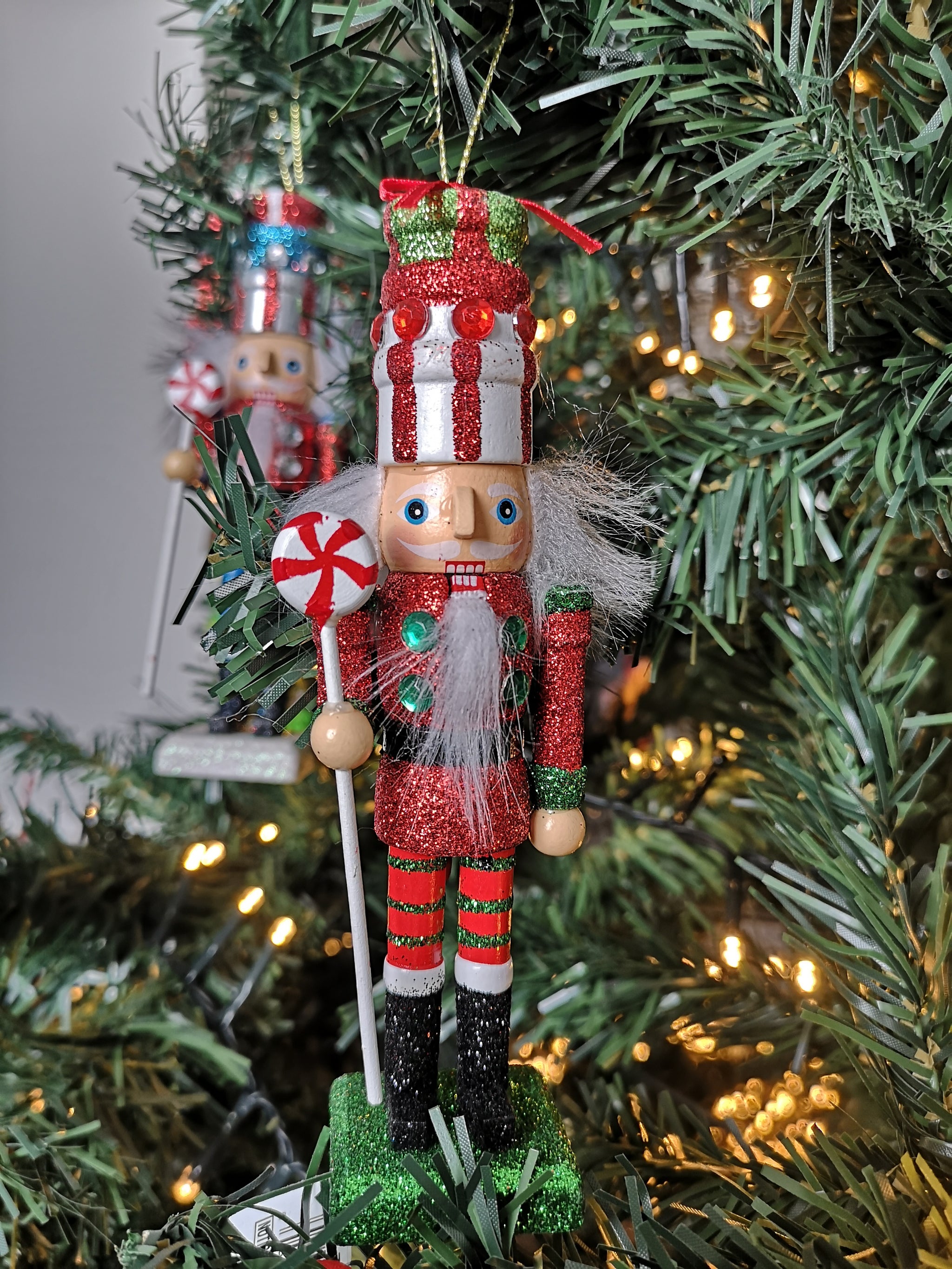Dit is een houten notenkraker uit de ‘’Hollywood’’ collectie van Kurt S. Adler. Deze notenkraker heeft een stapel cadeaus op zijn hoofd en een pepermuntsnoep scepter in zijn handen. Verder is de notenkraker voorzien van glitters en edelsteentjes. Deze houten notenkraker is ook beschikbaar in 2 andere kleuren.