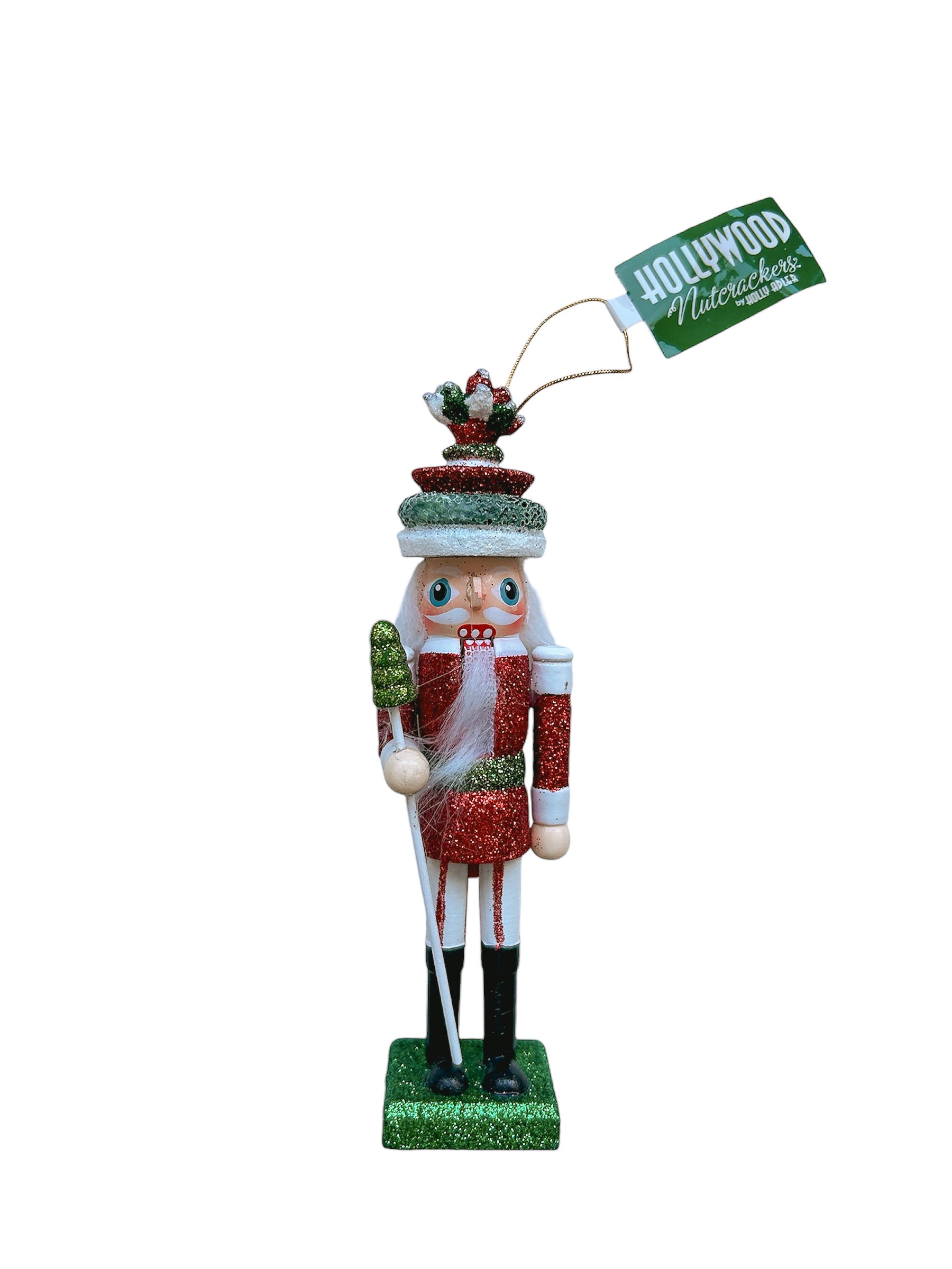 Deze houten notenkraker is afkomstig uit de ‘’Hollywood’’ collectie van Kurt S. Adler. Deze notenkraker heeft een hoed op en een kerstboomstaf in zijn hand. Verder is de notenkraker voorzien van glitters. Deze houten notenkraker is ook beschikbaar in 2 andere varianten: één met een kerstboomhoed en één met een pepermuntsnoepjesstaf.