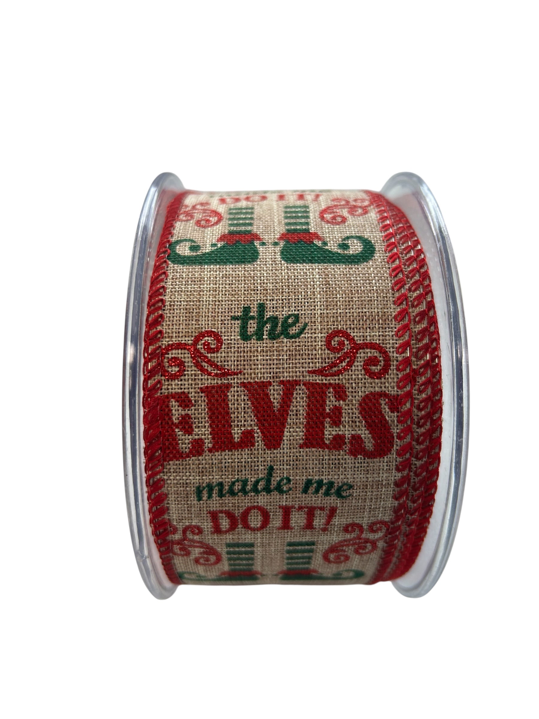 Add a playful and whimsicaltouch to your Christmas decorations with this ribbon, printed with the text "TheElves Made Me Do It" and featuring adorable elf legs. Perfect for gifts, wreaths, table decorations, or your Christmas tree, it's ideal for anyone who loves a fun and festive Christmas atmosphere.