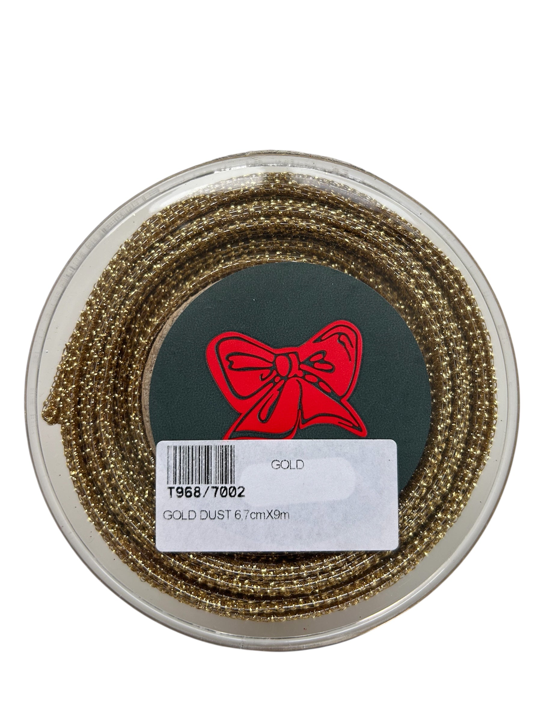 Add a festive touch to all your Christmas decorations with this beautiful gold glitter ribbon. The ribbon is completely covered in gold glitter, creating a dazzling effect that perfectly complements the festive spirit. Ideal for decorating gifts, wreaths, table decorations, or your Christmas tree.