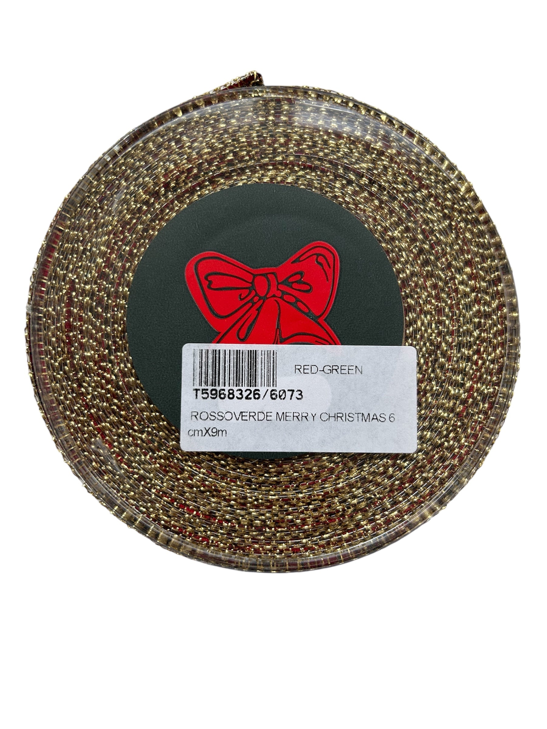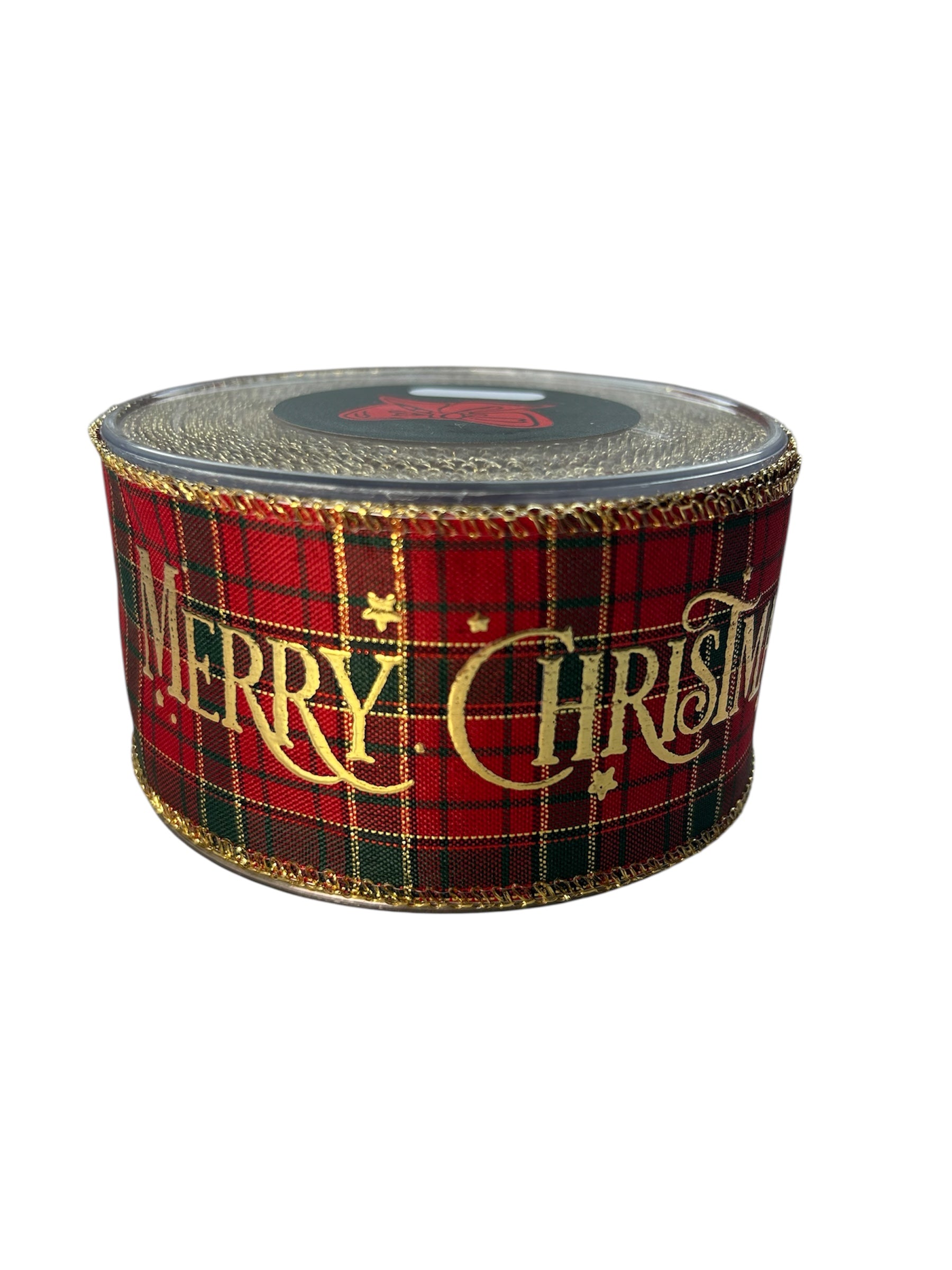 Give your Christmas decorations a festive and classic look with this red and green checked ribbon, printed with shiny gold "Merry Christmas" letters. Perfect for gifts, wreaths, table decorations, or your Christmas tree.